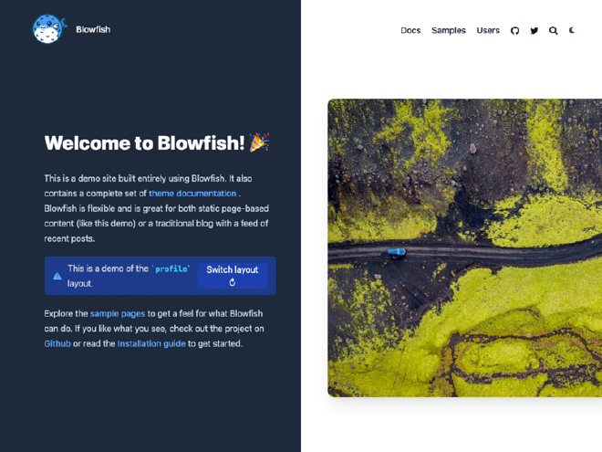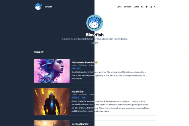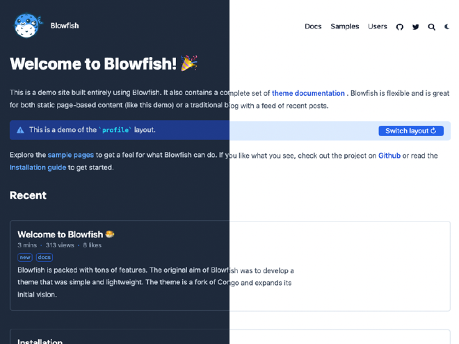 Blowfish 提供了一个完全灵活的主页布局。你可以选择两种主要模板,并提供了额外的参数来帮助调整设计。当然,你也可以提供自己的模板,完全控制主页的内容。